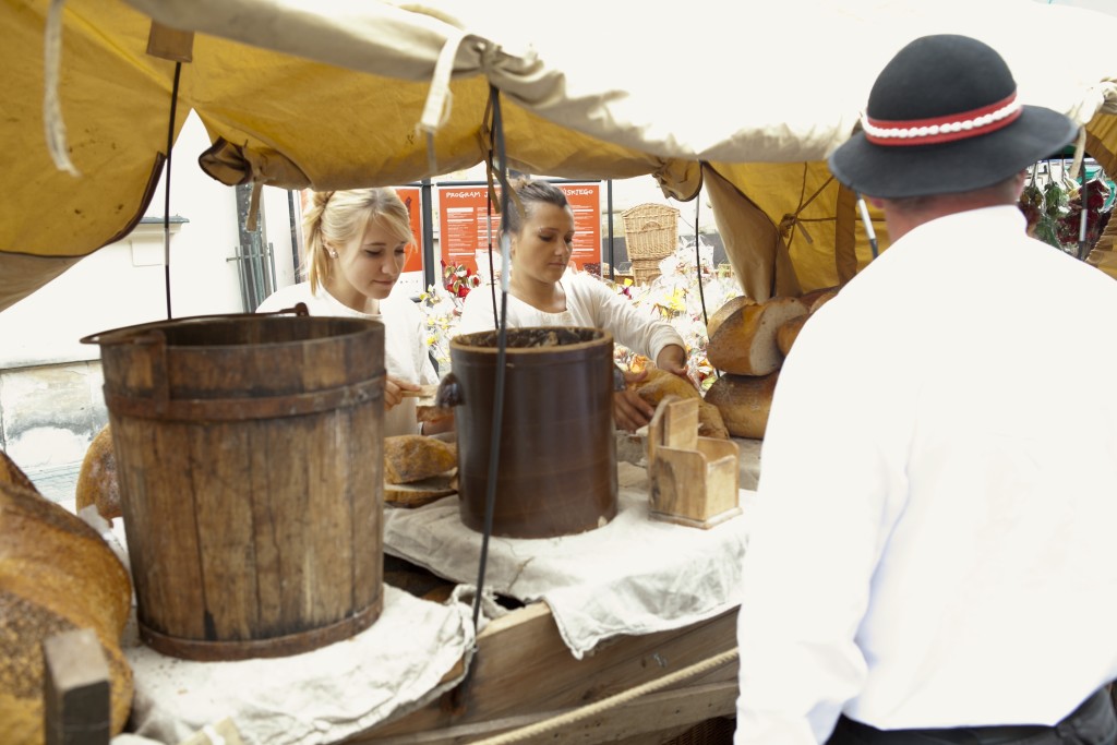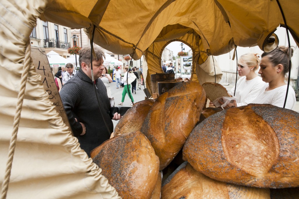 Pan Nikodem zajmuje się sprzedażą chleba ze smalcem.